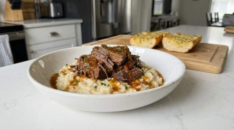 This Slow-Braised Pot Roast with Creamy Parmesan Risotto is the ultimate gourmet comfort food, featuring …