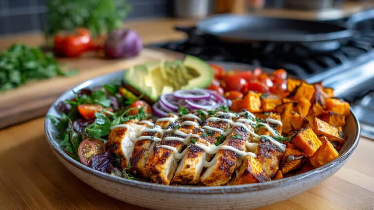 This Grilled Chicken and Sweet Potato Bowl is the ultimate healthy lunch or dinner that …