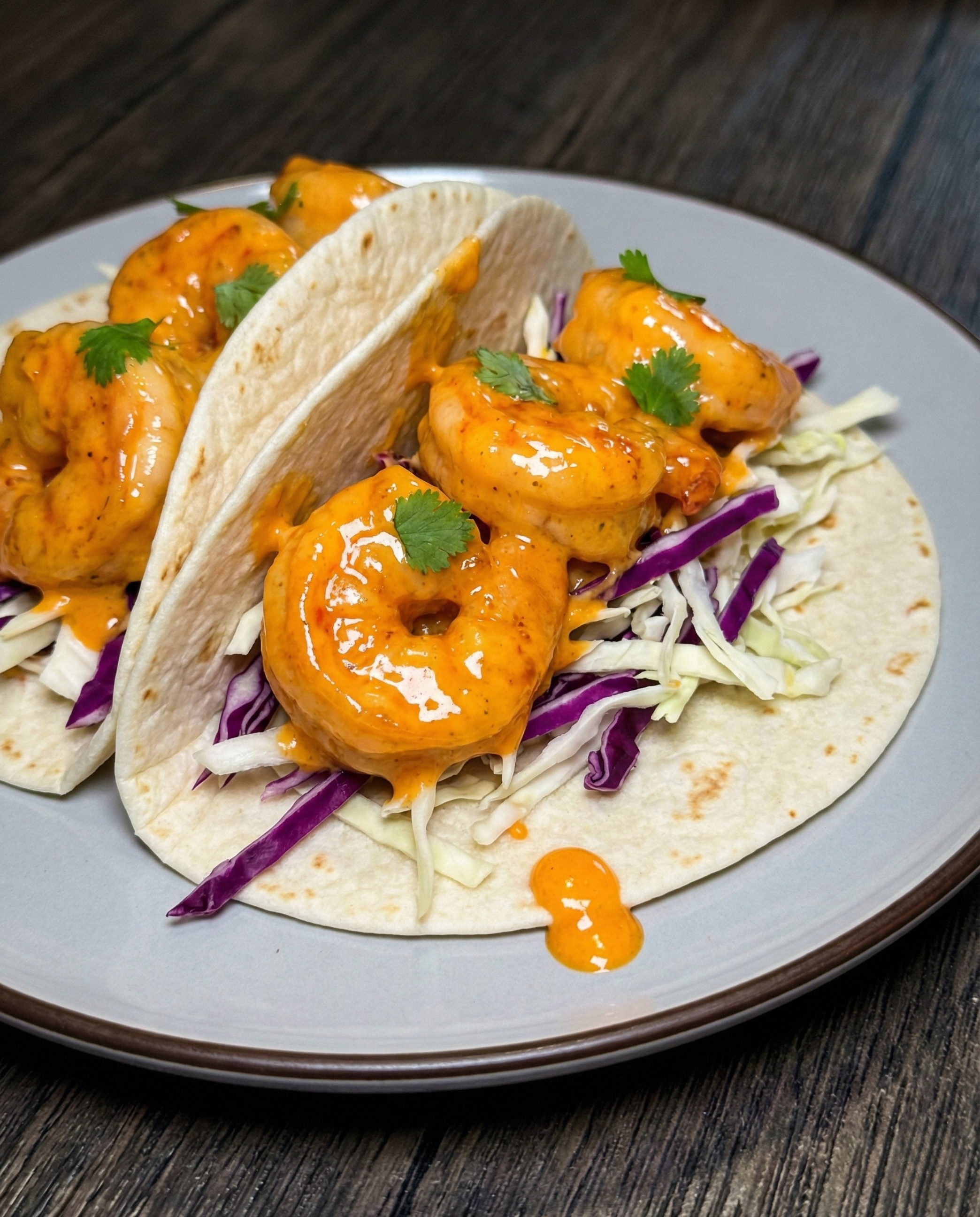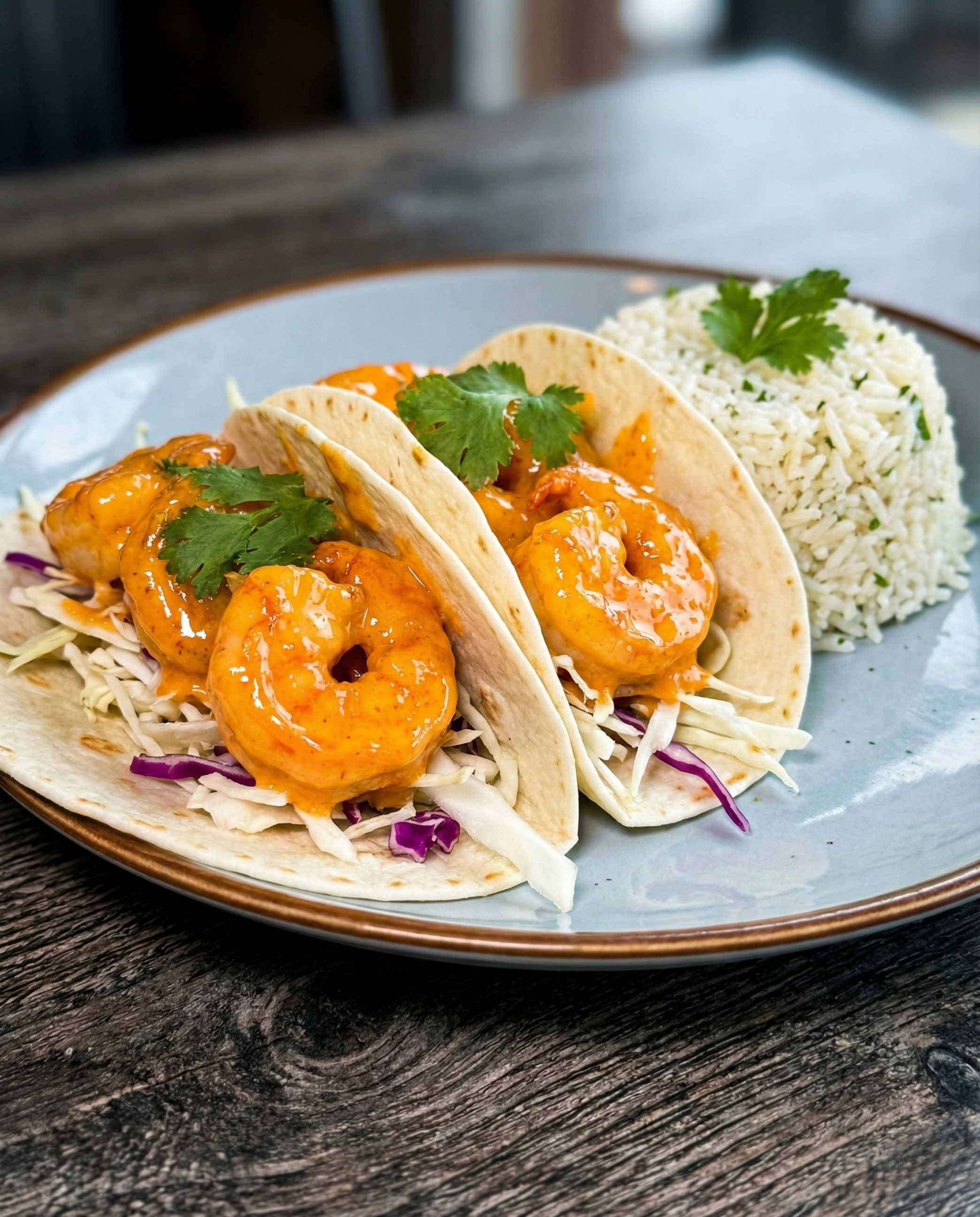 - You’ll love the explosion of textures—from the super crispy shrimp to the cool, creamy slaw and soft tortillas.