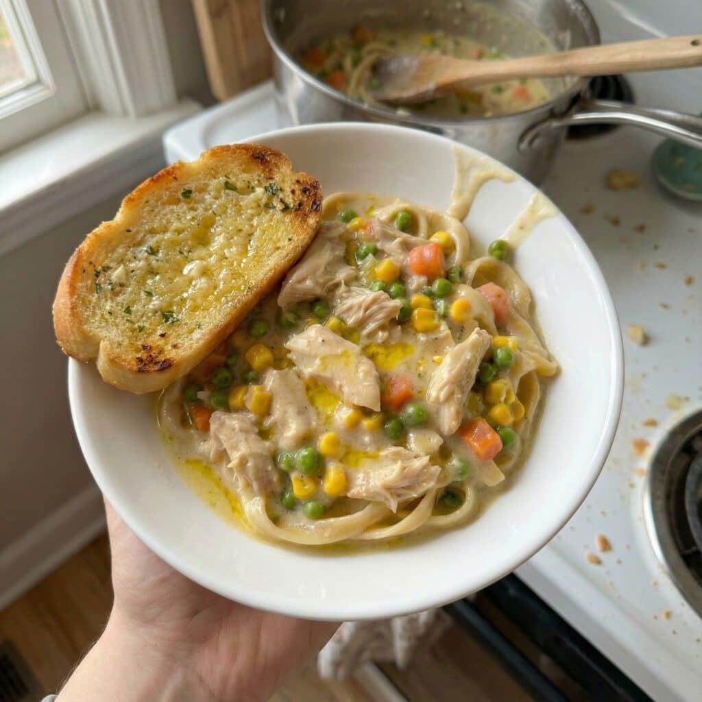 In my kitchen, this dish represents the perfect marriage of two comfort worlds: Italian-style pasta and American farmhouse pot pie. It reminds me of the simplicity found in my Dolly Parton’s 5-Ingredient Casserole Recipe, where simple ingredients create magic when combined correctly. Whether you’re serving it in a big family-style bowl or as a quick solo meal, this pasta brings a little bit of that cozy, “grandma’s kitchen” nostalgia to your own dining table.