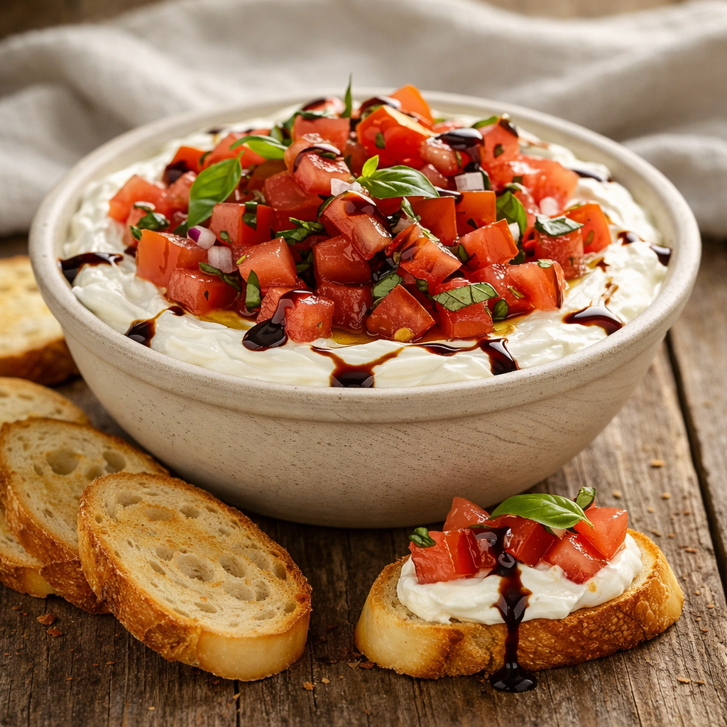 This creamy, vibrant bruschetta dip recipe transforms the classic Italian appetizer into a scoopable, shareable dip that’s ready in just 15 minutes.