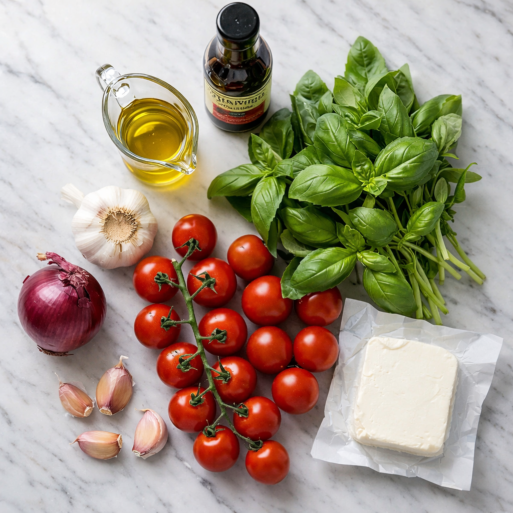 - Prep Your Veggies: Start by finely dicing your tomatoes and red onion, and mince your garlic cloves. Chiffonade your fresh basil by stacking the leaves, rolling them up tightly like a cigar, and slicing them into thin ribbons. Prepping everything first makes assembly a breeze!