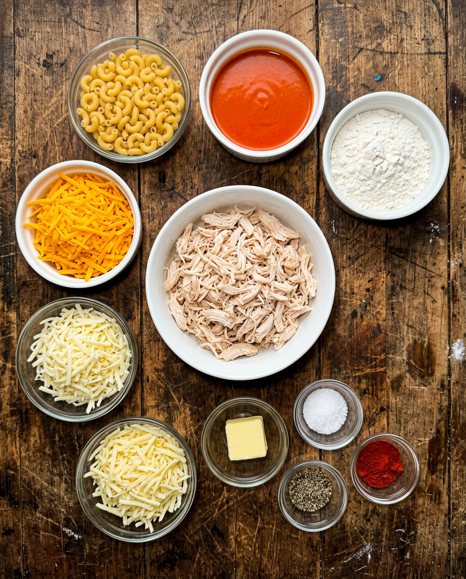 Ingredients for Buffalo Chicken Mac and Cheese