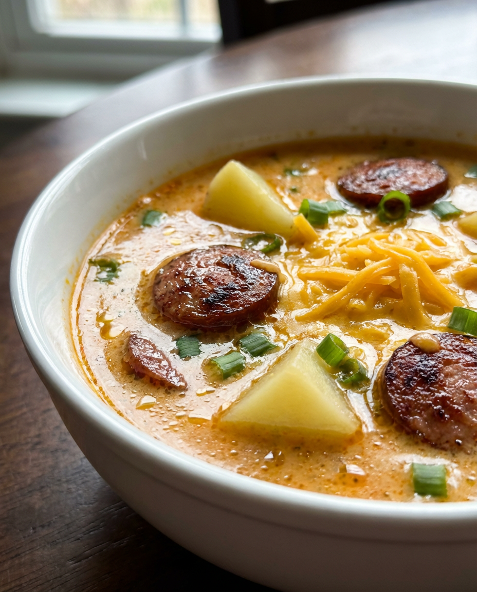 This isn’t just another potato soup; it’s a hearty, one-pot meal that delivers layers of authentic Louisiana flavor. The sausage provides a smoky, spicy kick that infuses the entire broth, while the slow-cooked vegetables create a sweet, aromatic base. Every spoonful is a perfect balance of creamy potatoes, savory sausage, and that signature Cajun warmth that will have you coming back for more. It’s the ultimate comfort food, perfect for a chilly night or whenever you’re craving something deeply satisfying.