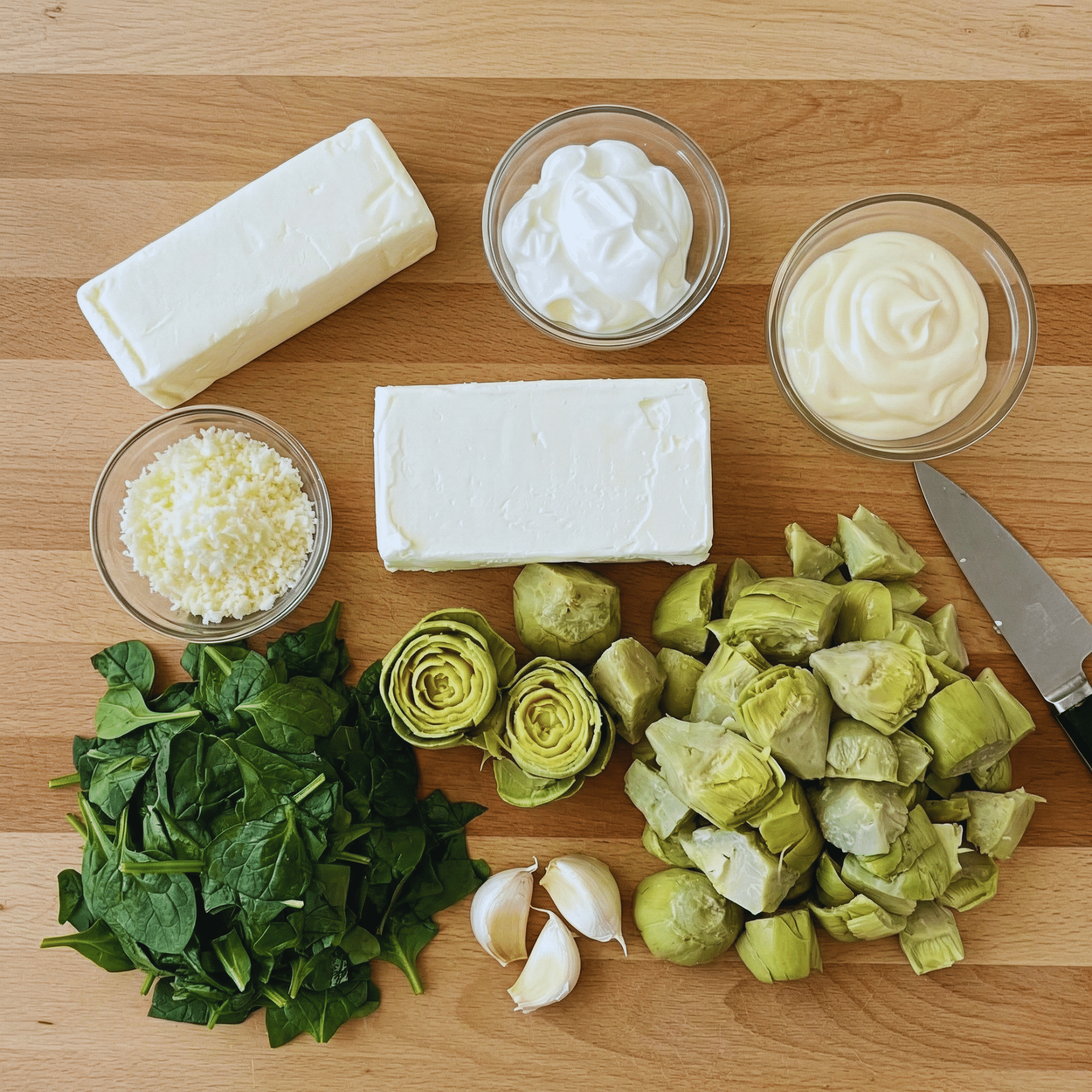 Ingredients for Hot & Cheesy Spinach Artichoke Dip