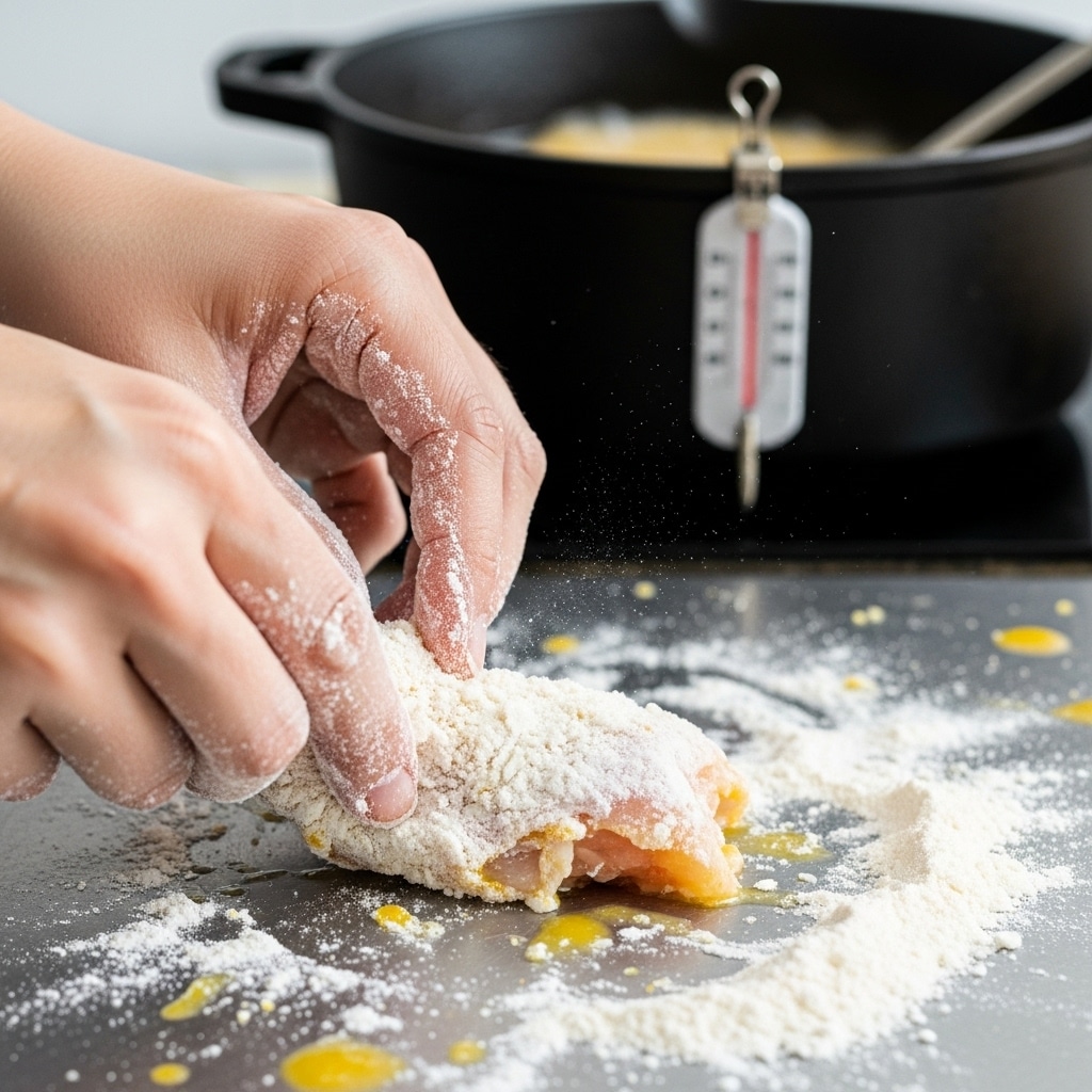 - Here’s a little trick I’ve learned: rest your coated chicken for 5 minutes before frying. This lets the coating adhere better so it doesn’t flake off in the oil. Game-changer.
