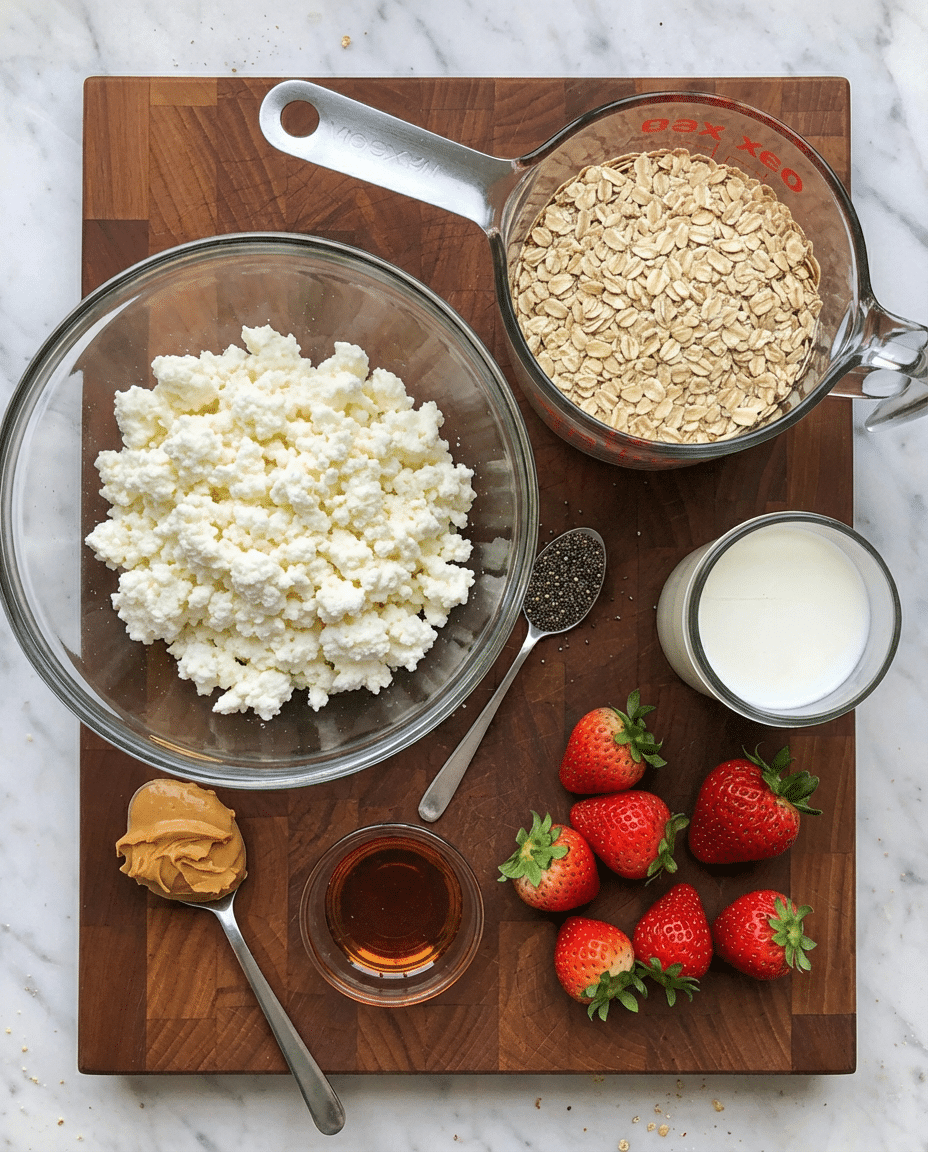 Ingredients for Cottage Cheese Protein Overnight Oats