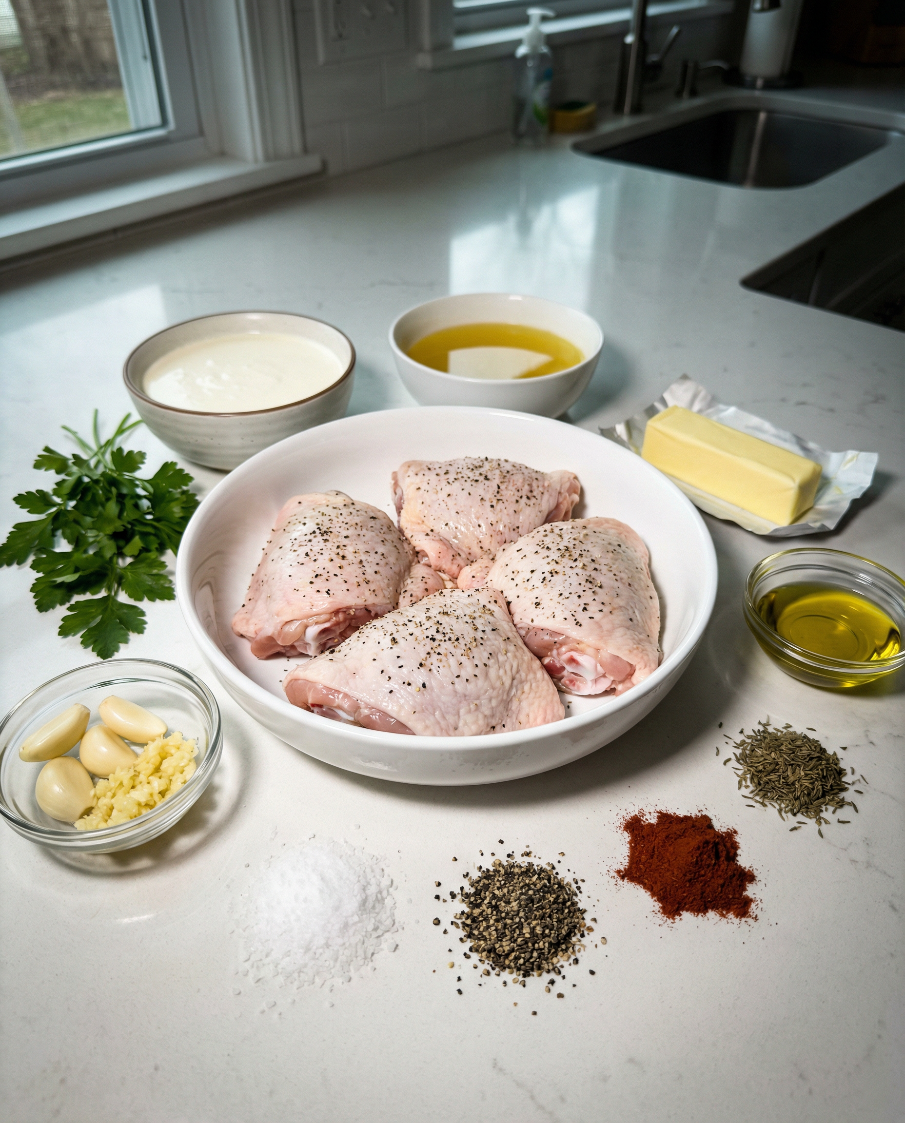 Ingredients for Creamy Oven Baked Chicken Thighs