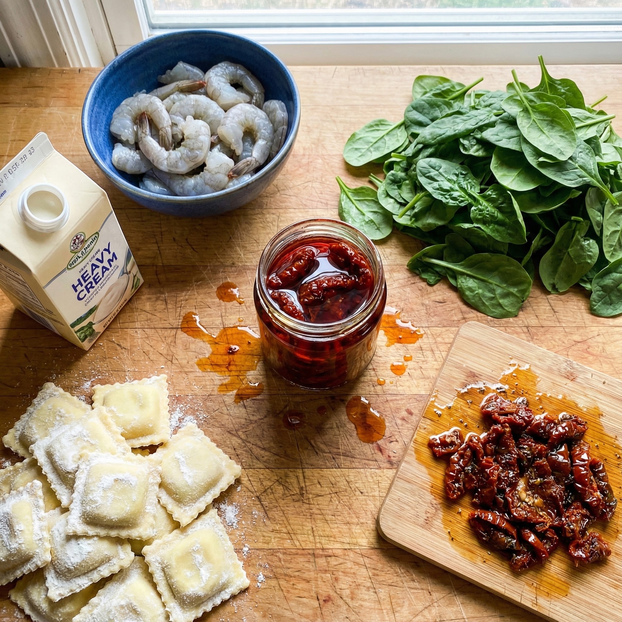 Ingredients for Creamy Tuscan Shrimp Ravioli