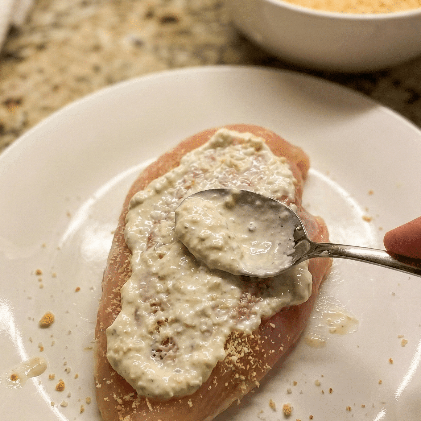 - Add the Breadcrumb Topping: In a third bowl, combine the remaining Parmesan cheese with the breadcrumbs. Sprinkle the breadcrumb mixture evenly over each piece of chicken to create a crispy, flavorful topping.