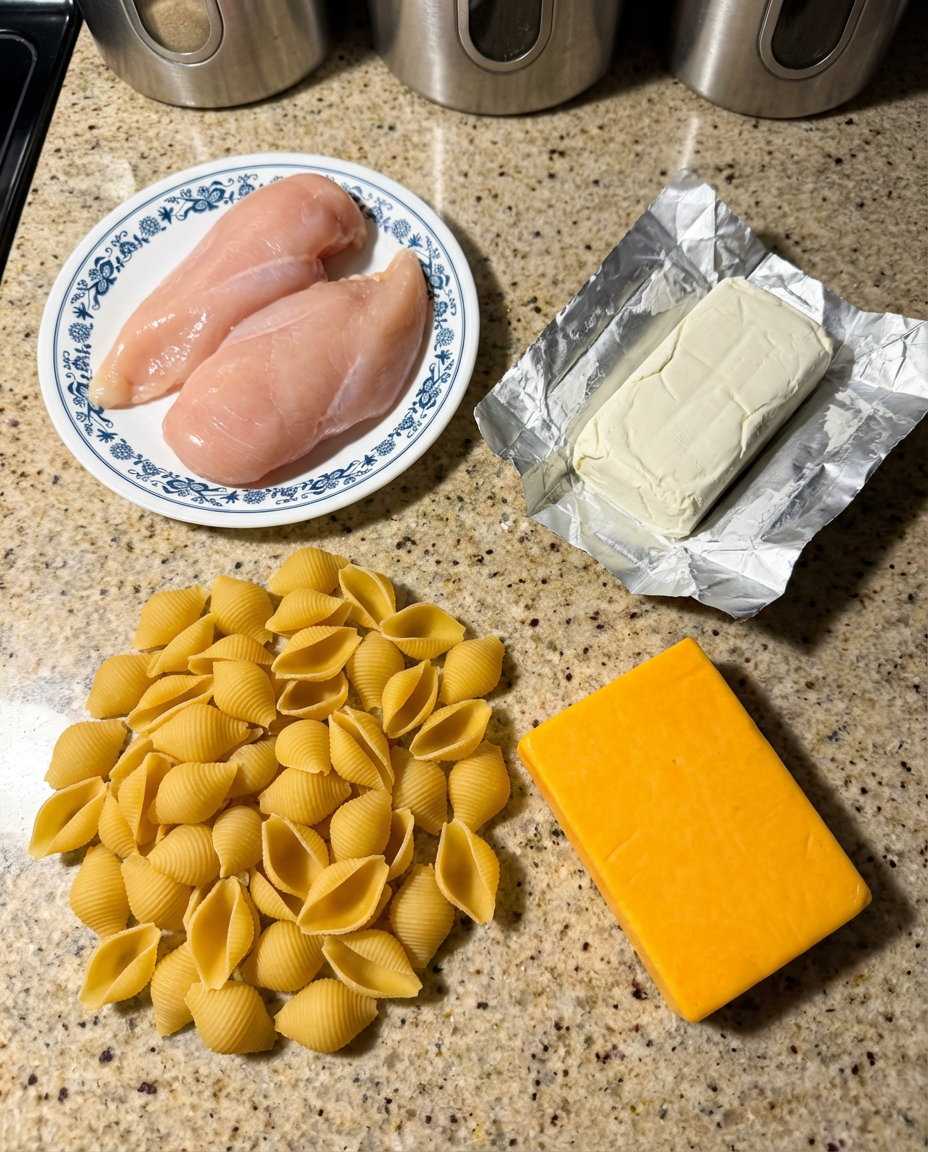 Ingredients for Crockpot Buffalo Chicken Mac and Cheese