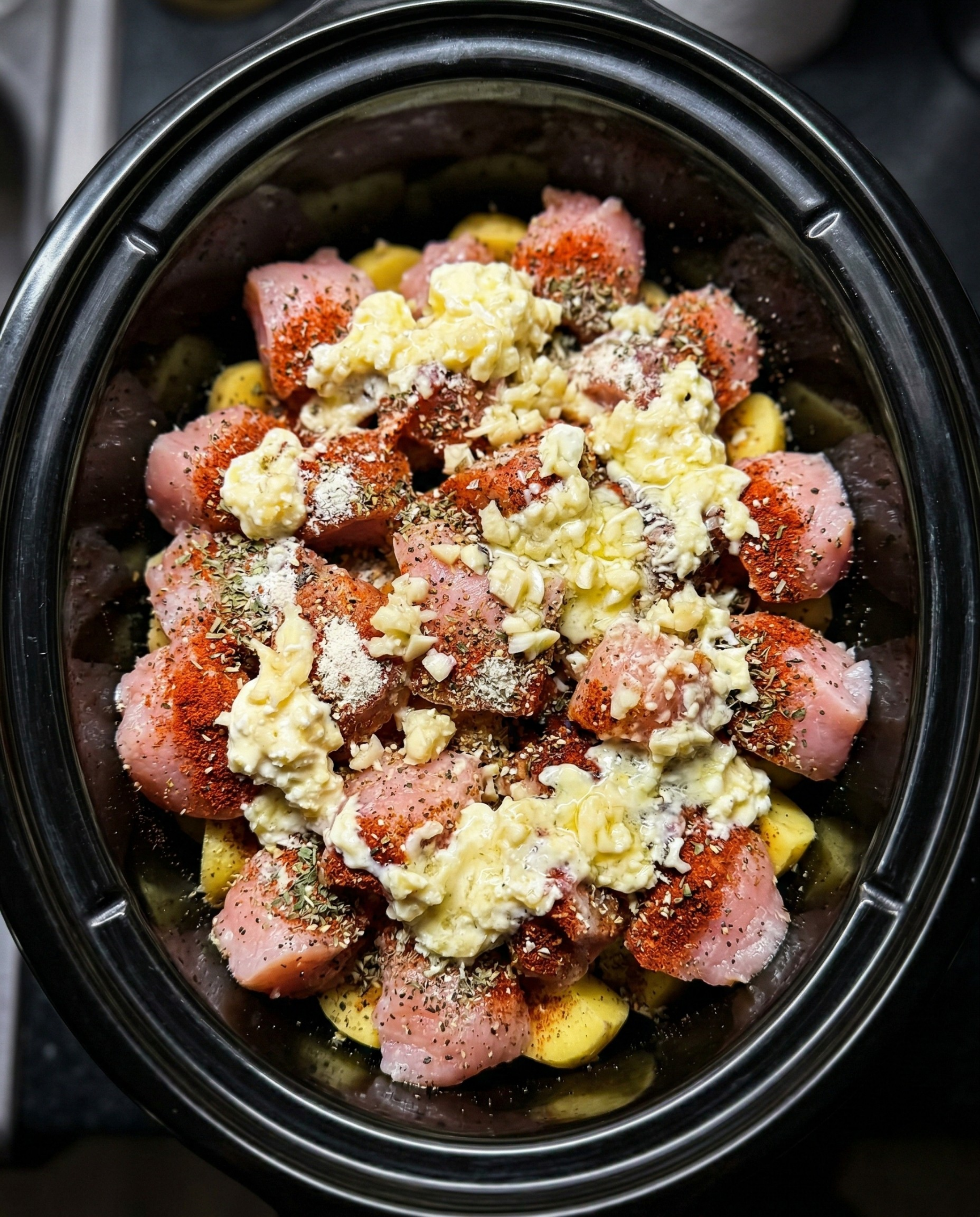 - Cover and cook on LOW for 6 hours or on HIGH for 3–4 hours, until chicken is cooked through (165°F) and potatoes are fork-tender.
