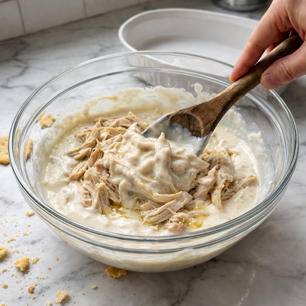 - Don’t over-crush the crackers; you want some bigger pieces to give the dish a satisfying crunch against the creamy chicken.