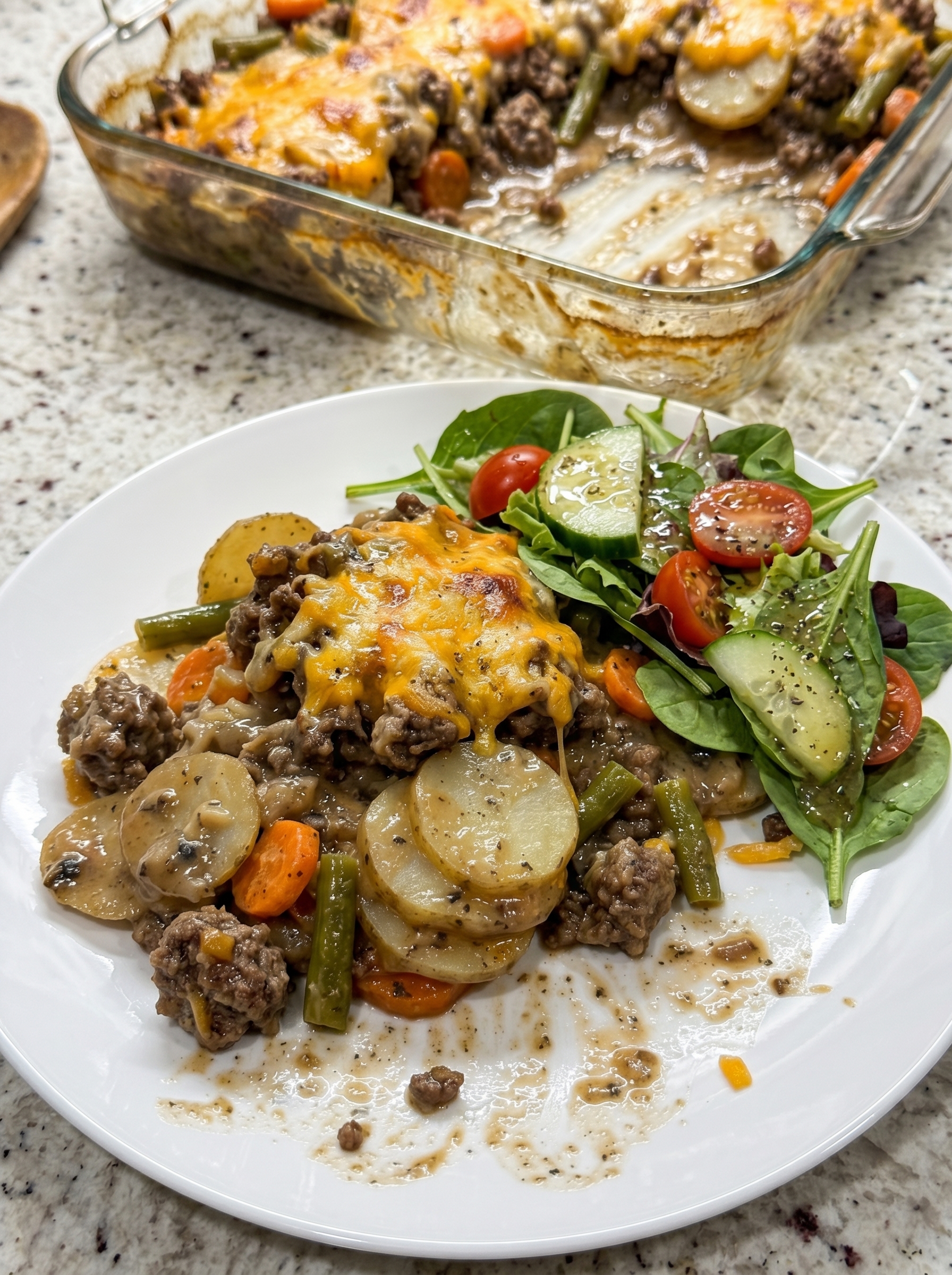 Looking for the ultimate comfort food? This easy hobo casserole is a budget-friendly family favorite loaded with savory ground beef, tender potatoes, carrots, and green beans, all baked in a rich mushroom sauce and topped with melted cheddar. It is the perfect satisfying, quick-prep meal for busy weeknights!