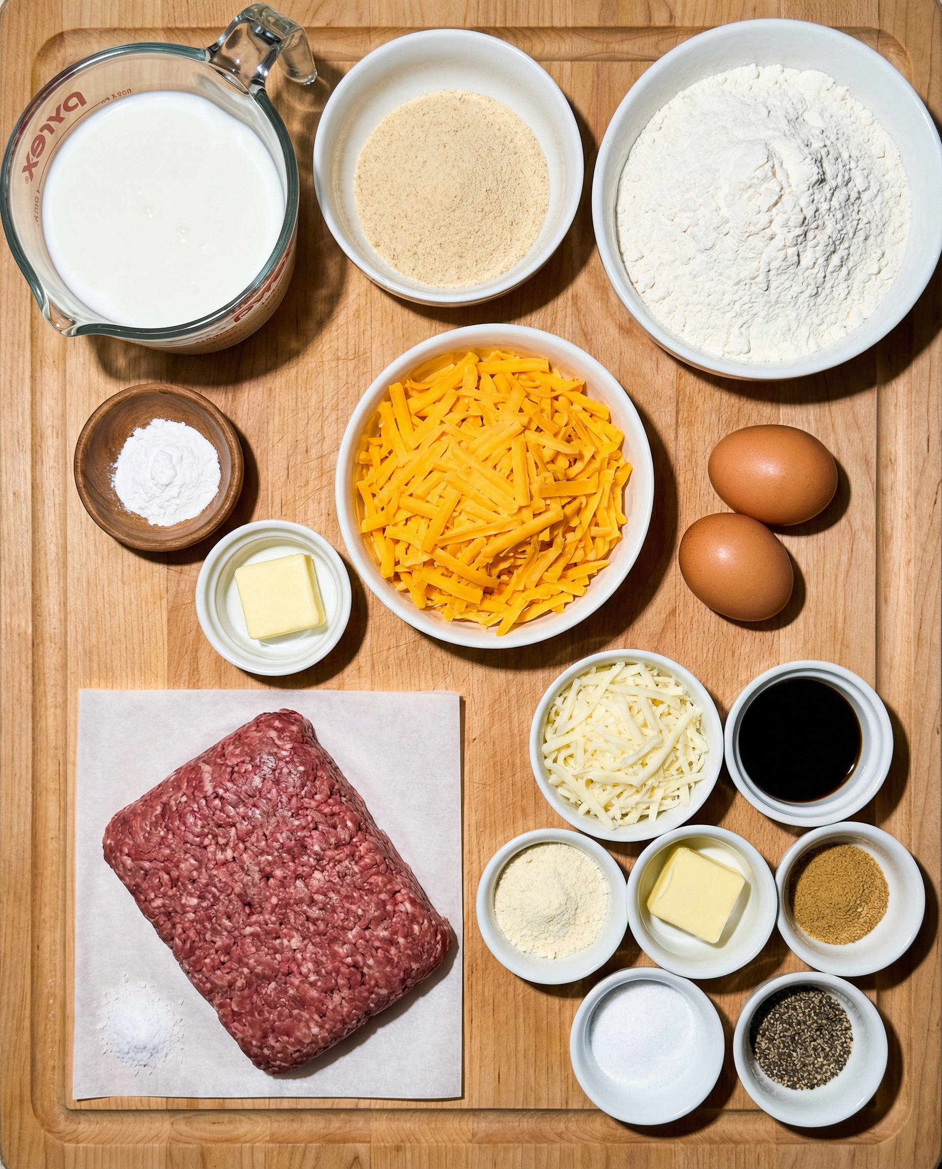 | 1 cup Cheddar Cheese, shredded | Sharp cheddar gives the best flavor. |