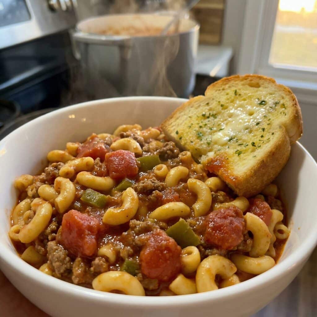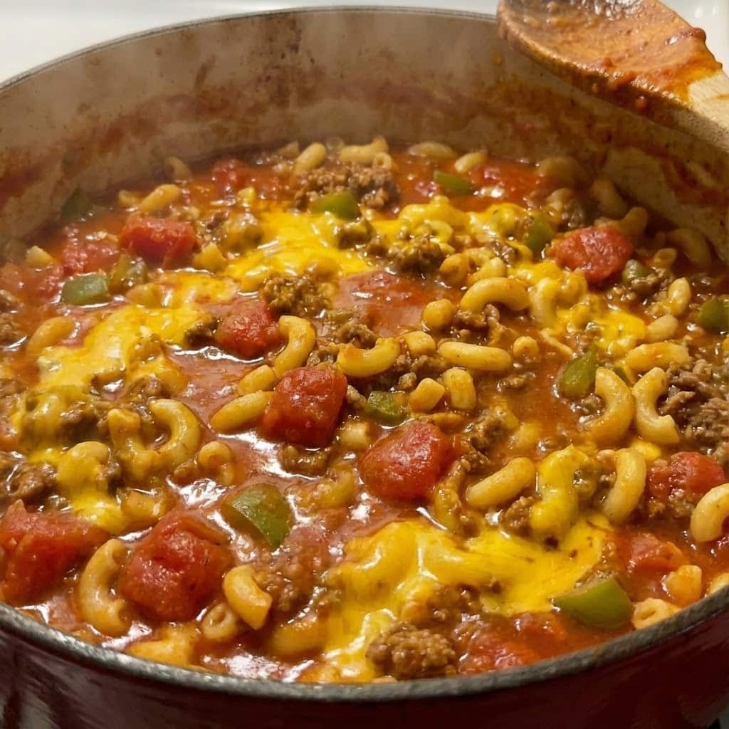 This isn’t just pasta with sauce; it’s pure nostalgia. Also known as “slumgullion” or “chop suey” in different parts of the Midwest, this hearty dish combines the ease of a skillet meal with the soul-warming flavors of your grandmother’s kitchen. By cooking the macaroni directly in the savory tomato broth, every bite is infused with flavor, and the starch from the pasta thickens the sauce into a silky, crave-worthy coating. It’s the ultimate busy-weeknight dinner that tastes like a Sunday feast.