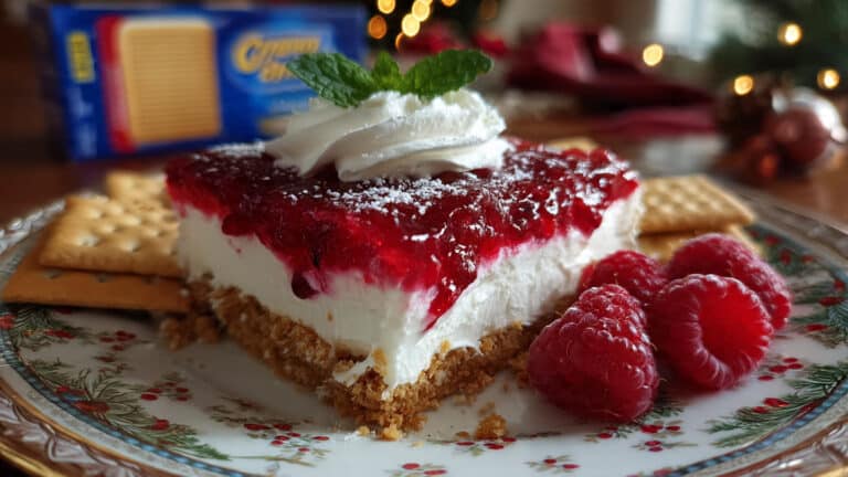 This Raspberry Delight is a refreshing, three-layer no-bake dessert featuring a buttery cinnamon-graham crust, a …