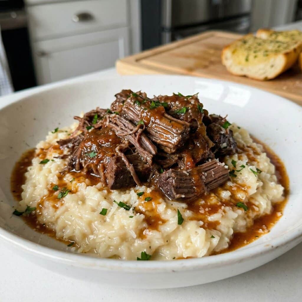 If you’re looking for a meal that will literally make your guests lick their plates, you’ve found it. There is something magical about the way the savory juices from the shredded beef melt into the buttery parmesan risotto, creating a flavor explosion that is both rustic and sophisticated. It’s the kind of dish that turns a regular weeknight into a special occasion without keeping you tied to the stove all day.​