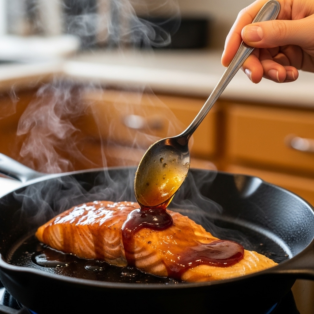 - Baste the fillets continuously with a spoon until the sauce thickens into a sticky, glossy glaze that coats the fish perfectly.