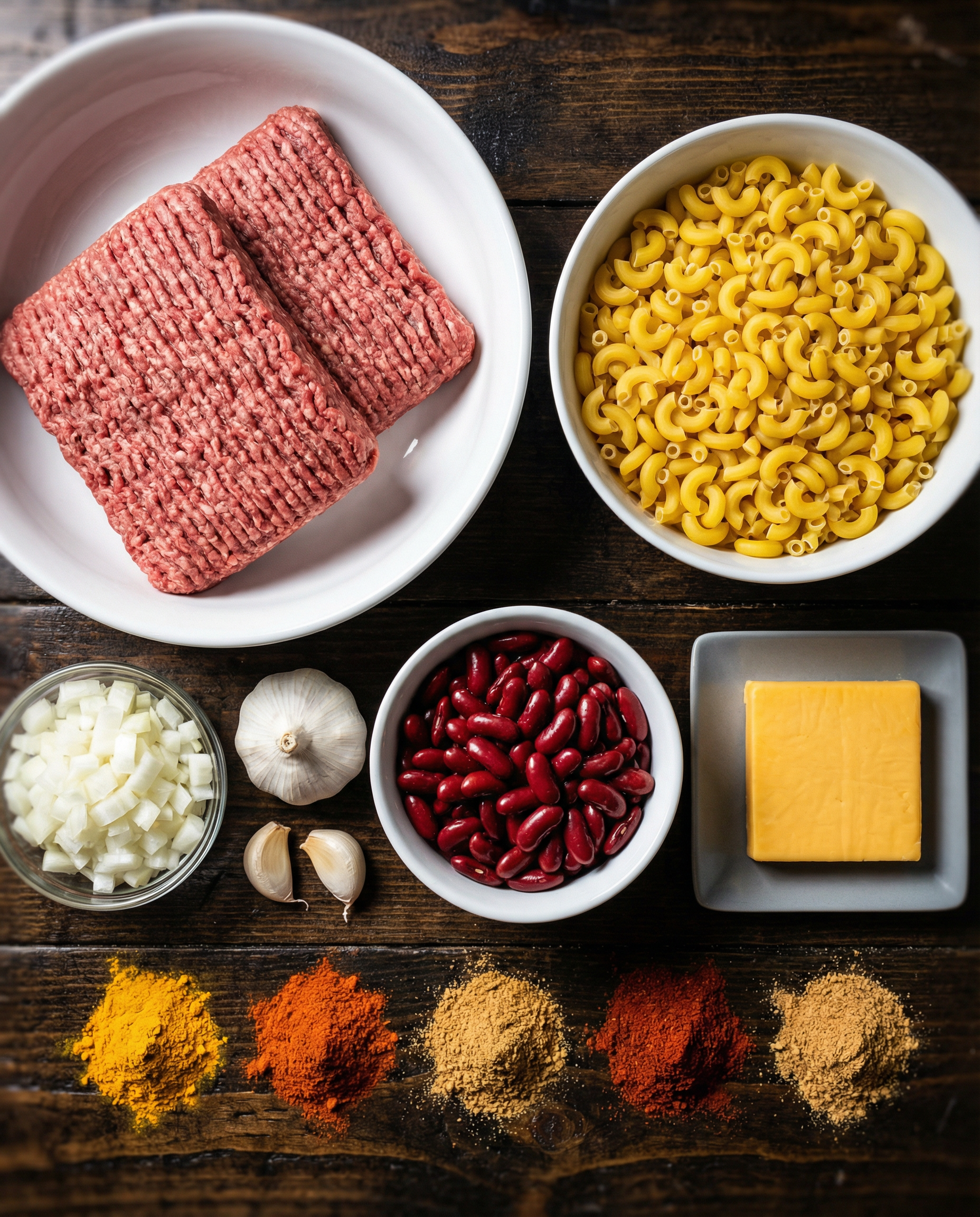 Ingredients for Chili Mac and Cheese