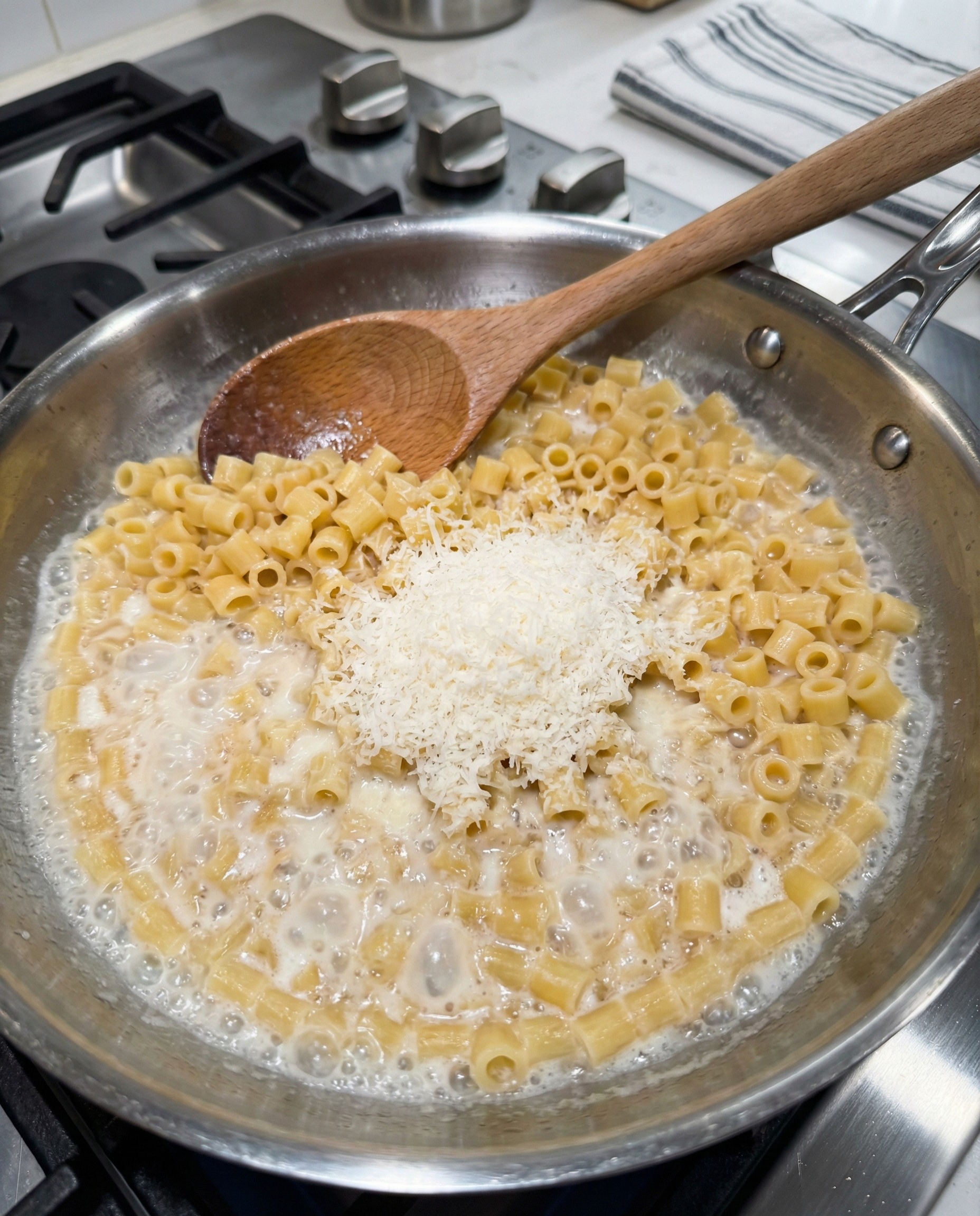 - Emulsify: Stir vigorously until the cheese melts and emulsifies with the remaining starchy broth to create a thick, glossy sauce.